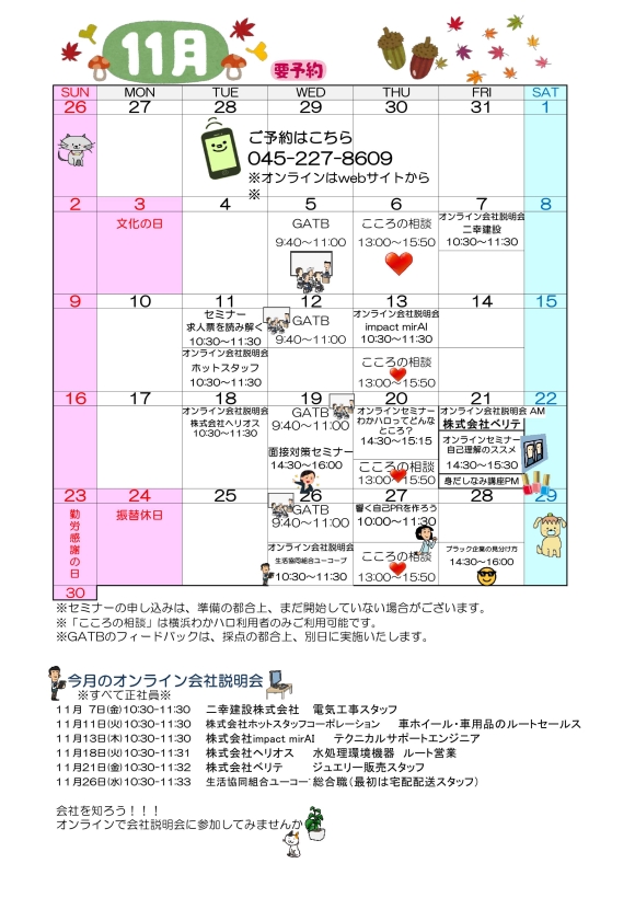 - 11月27日 10:00~11:30 来所型グループワークセミナー