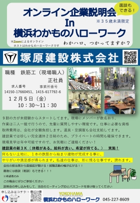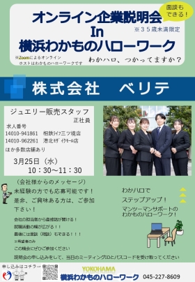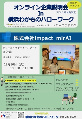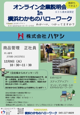 横浜わかものハローワークでは、オンラインによる会社説明会を開催しております。