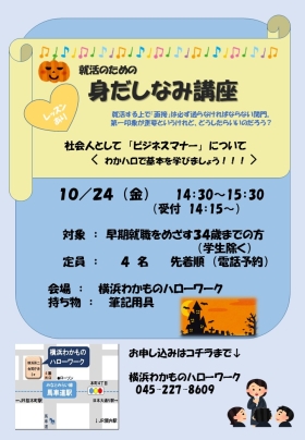 ご希望の方は、横浜わかものハローワークまで、お電話にてお申し込みをお願いいたします。