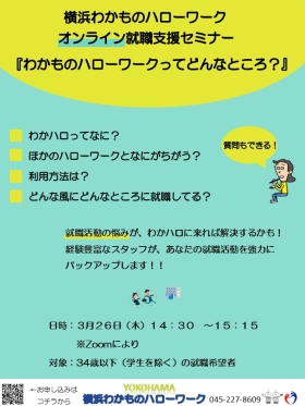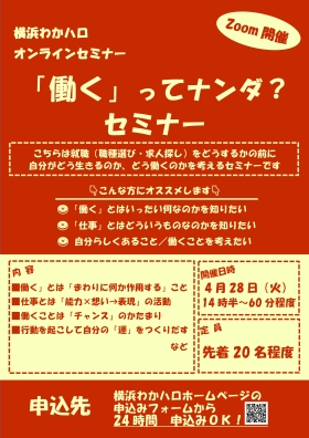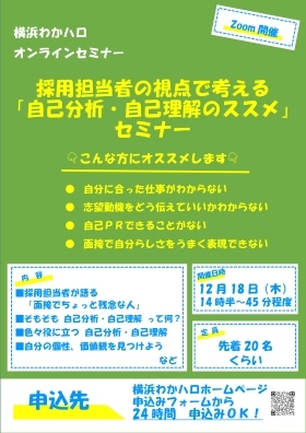 横浜わかハロのセミナーは、これから就職活動を始められる方やハローワークを利用される方向けのセミナーです。