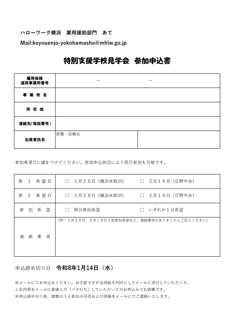 ■申込方法:下記の参加申込書により、ハローワーク横浜雇用援助部門あてメール(メールアドレスは参加申込書に記載)にてお申し込み下さい。