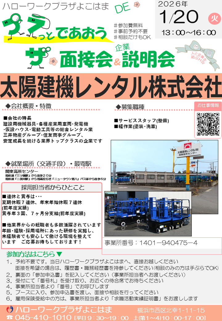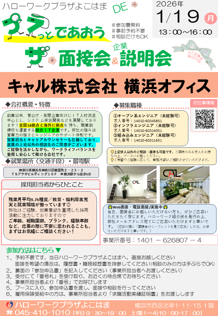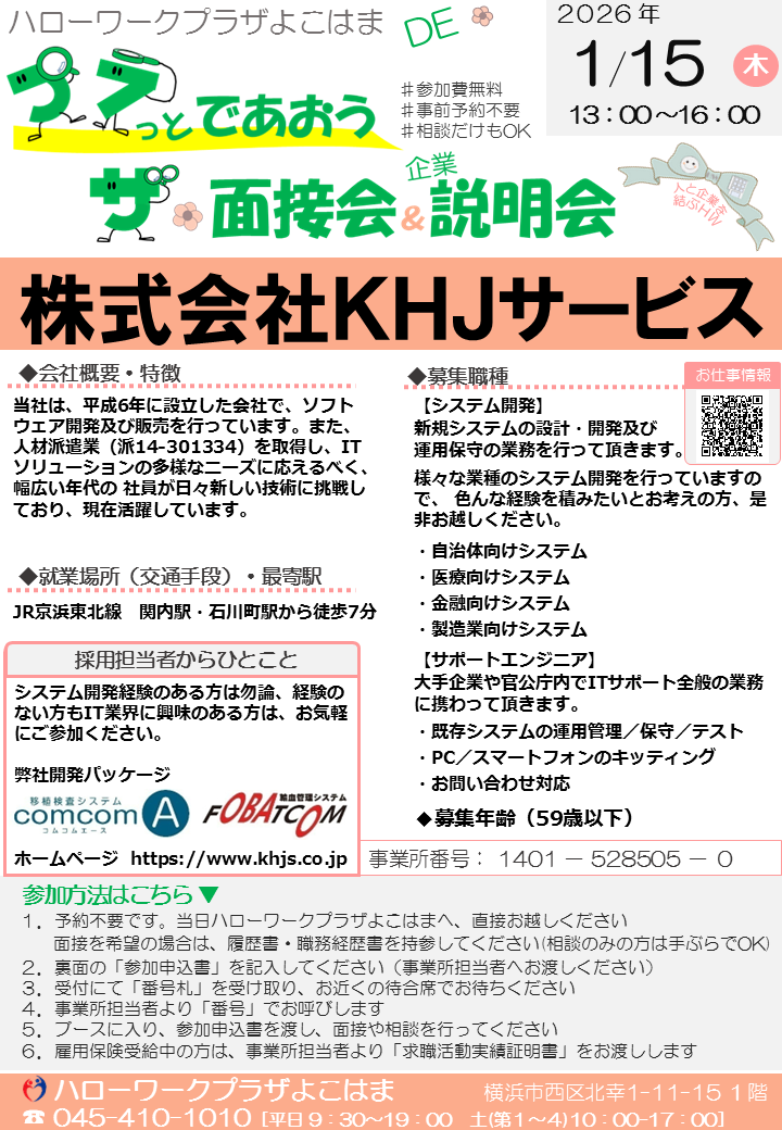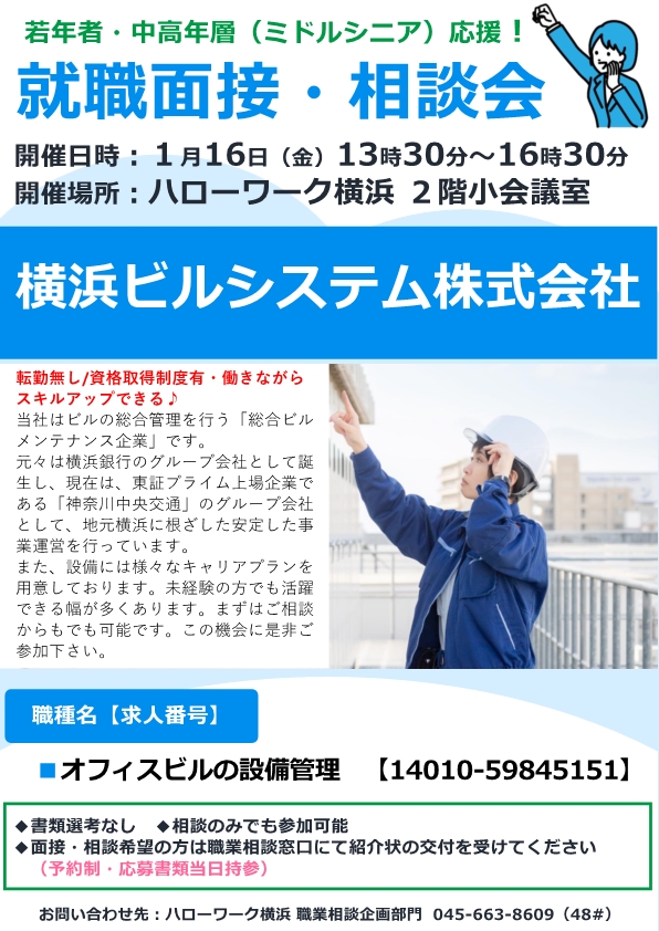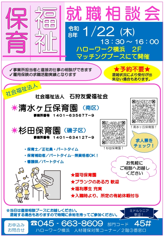 1月ミニ面接会・職場見学会等情報