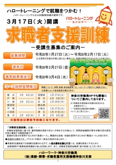 (↑3月17日開講 求職者支援訓練のコース一覧は画像をクリックしてください。)
