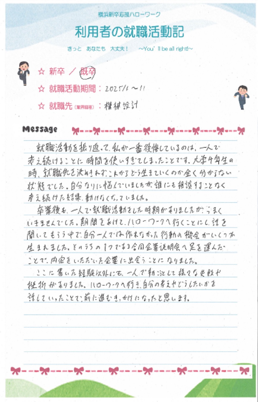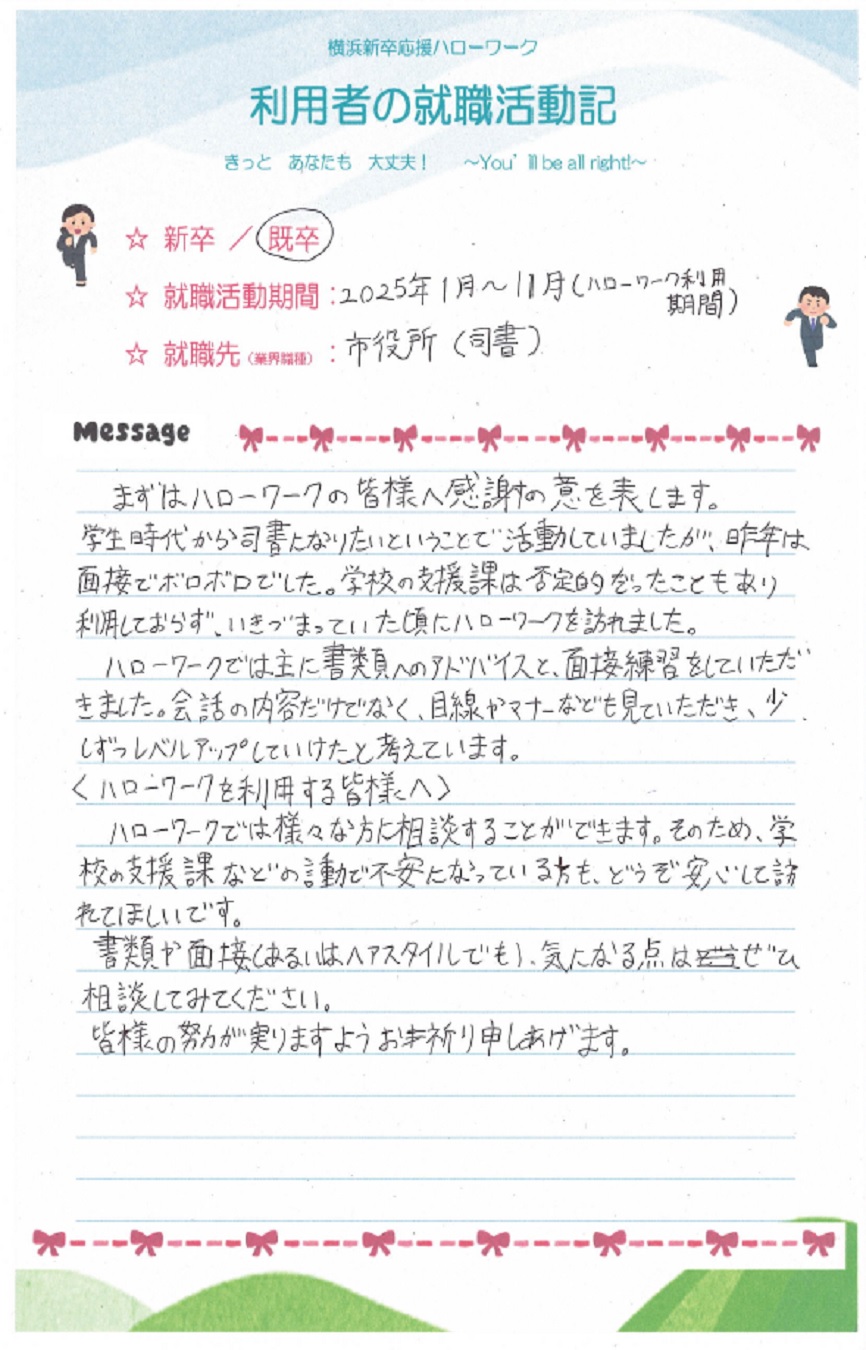 横浜新卒応援ハローワークを利用して就職した方々の声を一部ご紹介します。
