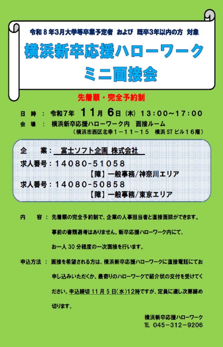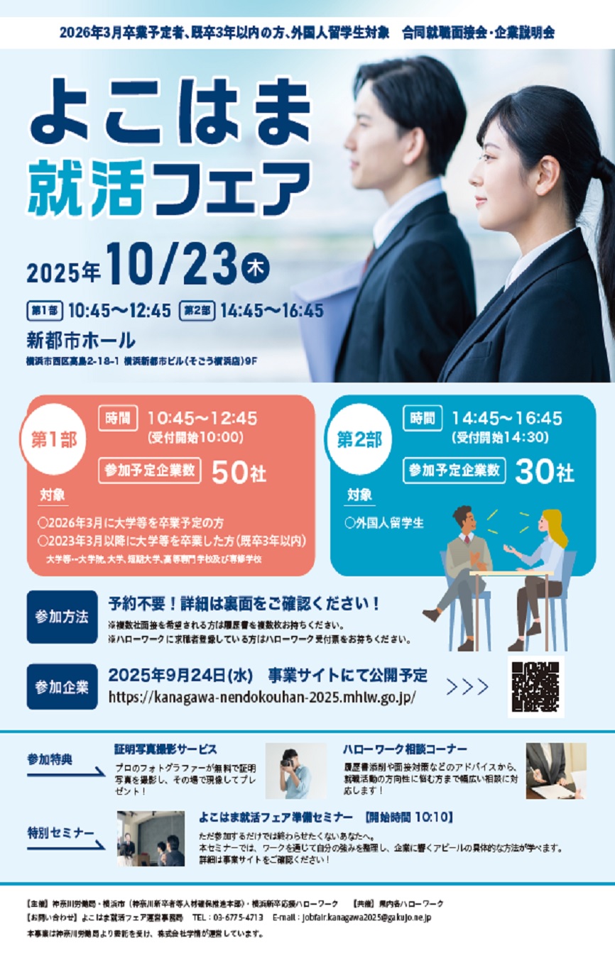 令和7年9月26日 10月23日月開催の合同就職面接会・企業説明会「よこはま就活フェア」のお知らせ