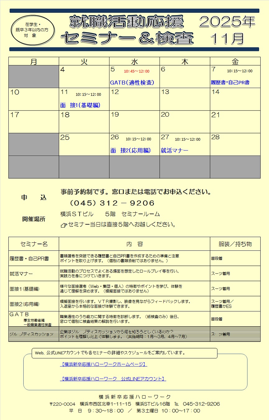 令和7年10月1日 10月および11月開催の就職活動応援セミナーのスケジュールを公開しました。