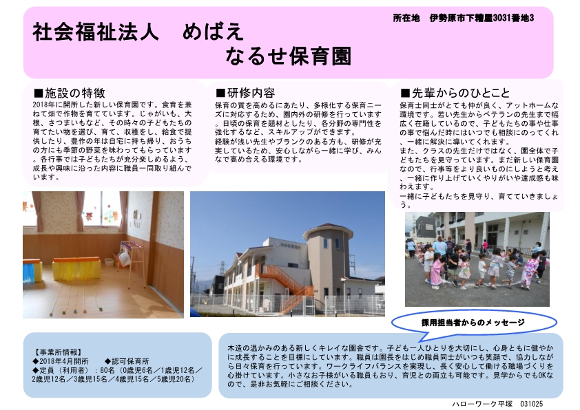 ■「社会福祉法人 めばえ なるせ保育園」の求人情報
