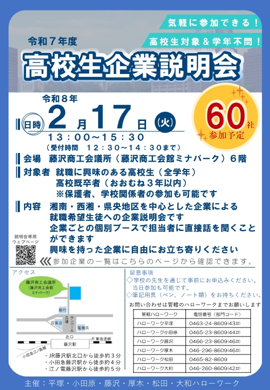 ハローワーク(平塚・小田原・藤沢・厚木・松田・大和)高校生企業説明会