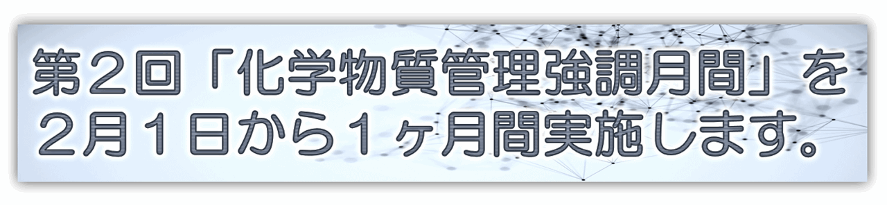 - 強調月間【厚生労働省サイト】[令和7年11月] 第2回「化学物質管理強調月間」を、令和8年2月1日から1ヶ月間実施します。NEW