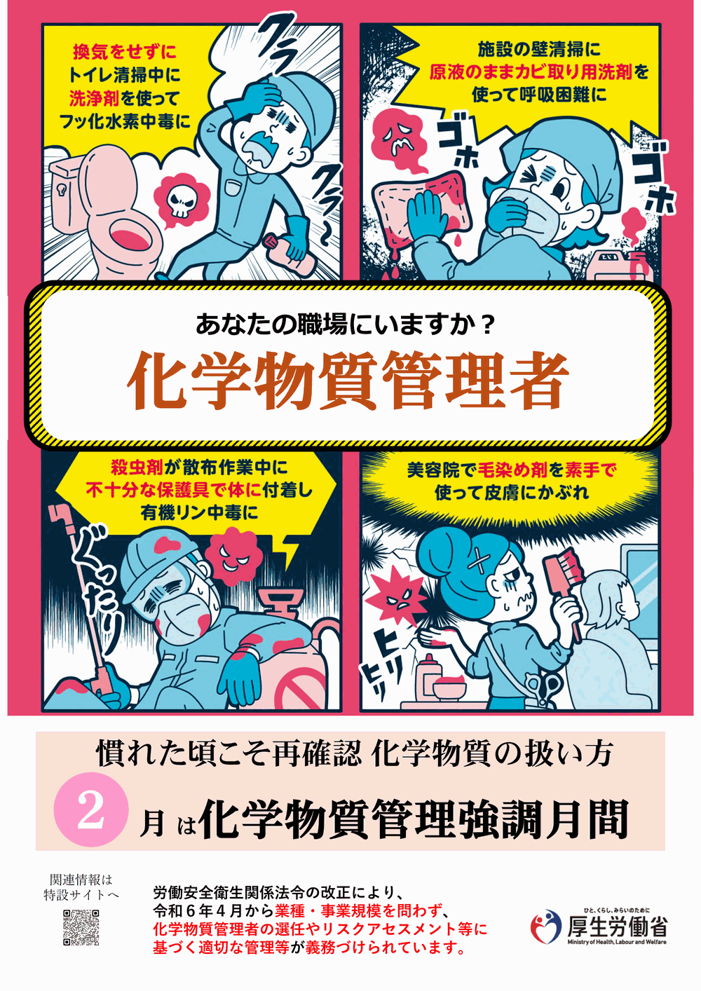 - 強調月間【厚生労働省サイト】[令和7年11月] 第2回「化学物質管理強調月間」を、令和8年2月1日から1ヶ月間実施します。