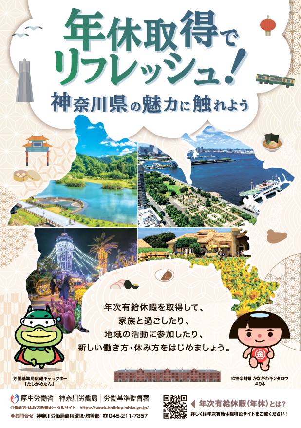 加えて、年次有給休暇を活用して、神奈川県内の四季折々のイベントへの参加や自治体活動に参加すること、混雑の少ない平日の温泉や様々な場所への観光などにより、まだ知らなかった神奈川県の魅力に触れることができるのではないでしょうか。