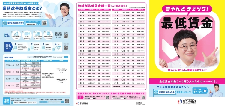 ⇒ 詳細は『「業務改善助成金」について(厚生労働省HP)』をご覧ください。◆賃金引上げのための支援策 各種リーフレットのご案内 NEW