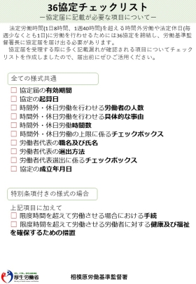 相模原労働基準監督署では、36協定が届出される際に多く記載漏れが確認される項目についてチェックリストを作成しました。