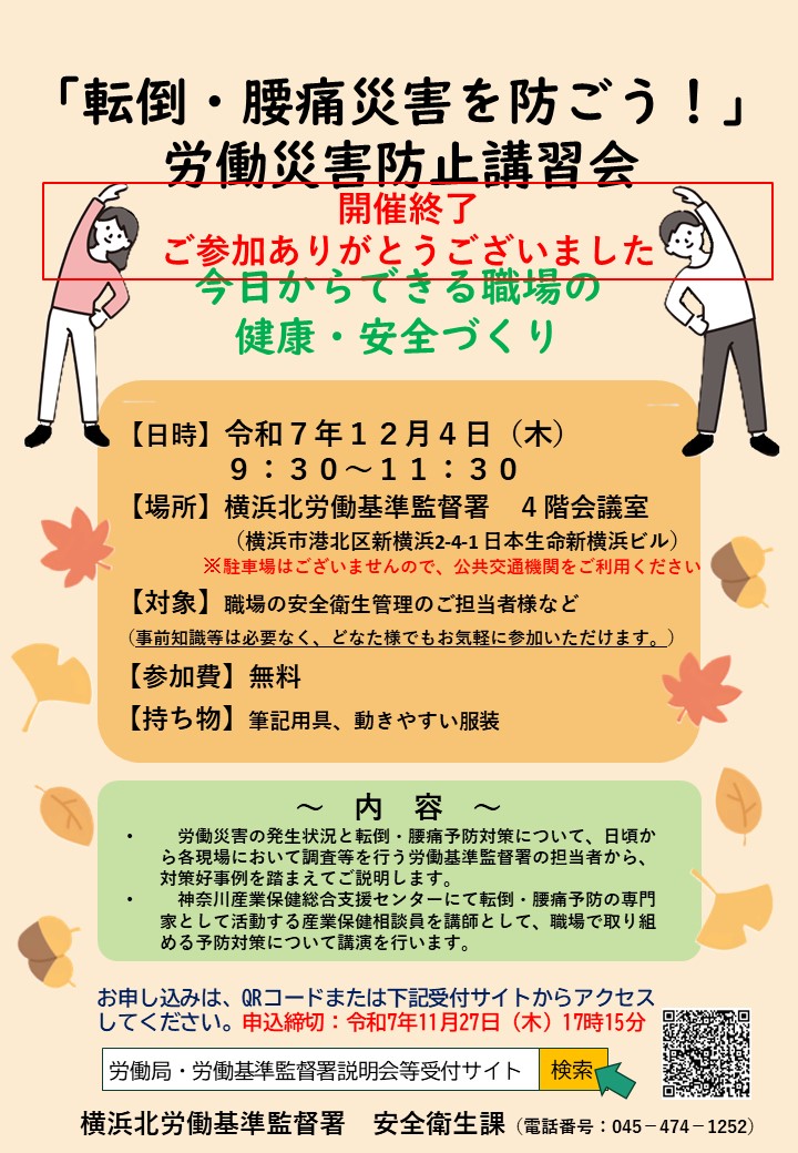 当署では引き続き労働災害防止のための講習会を開催する等取り組みを継続してまいります。またのご参加をお待ちしております。