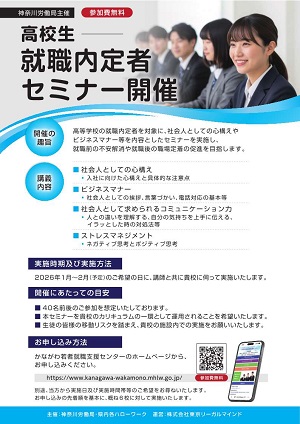 詳しくは → https://www.kanagawa-wakamono.mhlw.go.jp/seminar/highschool-seminar/