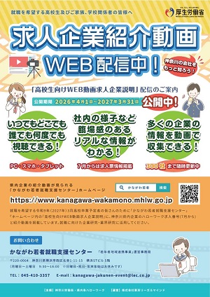 詳しくは 高校生向け WEB動画求人企業説明(かながわ若者就職支援センターHP)をご覧ください。