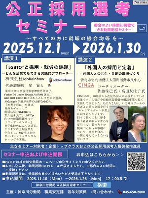 - 令和7年度「公正採用選考セミナー」オンライン開催のお知らせ【職業安定課】