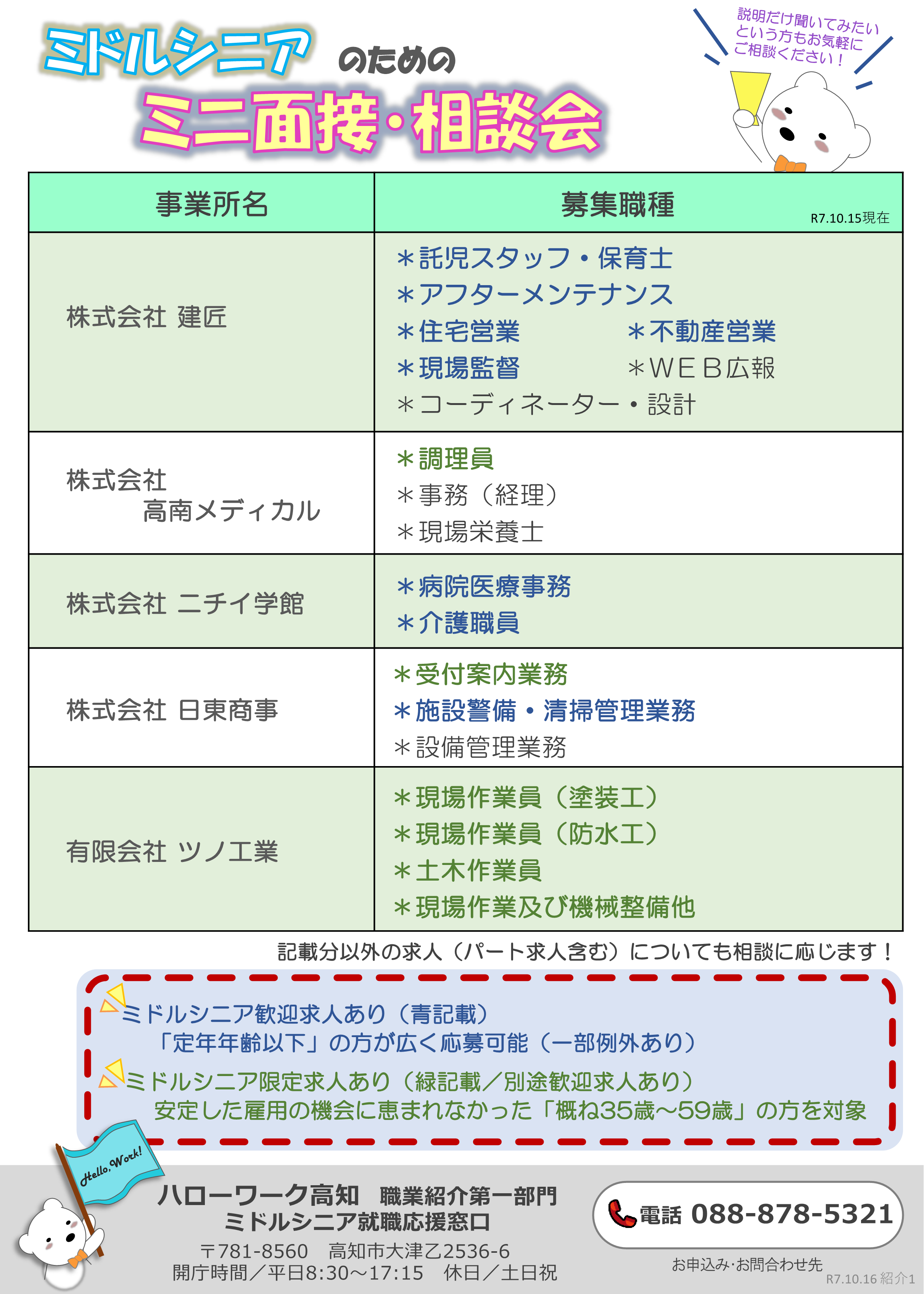 ・ミドルシニアのためのミニ面接・相談会(R7.6/10)