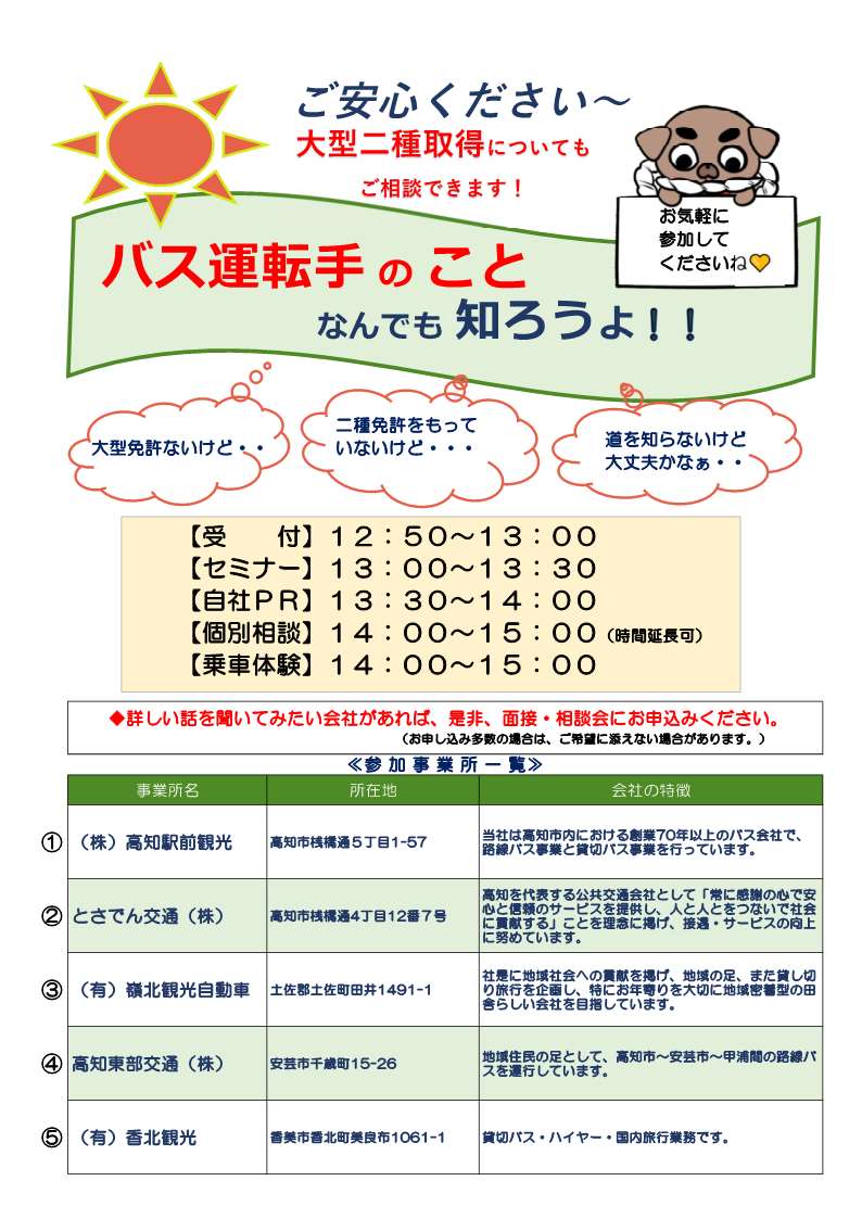 【1月29日】 バス運転手の仕事を知るセミナー&ミニ面接・相談会