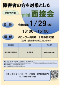 【1月27日】明星産商(株)会社説明・個別相談会を開催します。 【1月29日】 バス運転手の仕事を知るセミナー&ミニ面接・相談会 【1月29日】〈(株)四国銀行〉障害者の方を対象としたミニ面接会を開催します!
