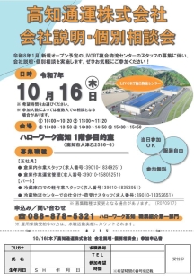 ハローワーク高知にて、高知通運株式会社の会社説明・個別相談会を開催します。