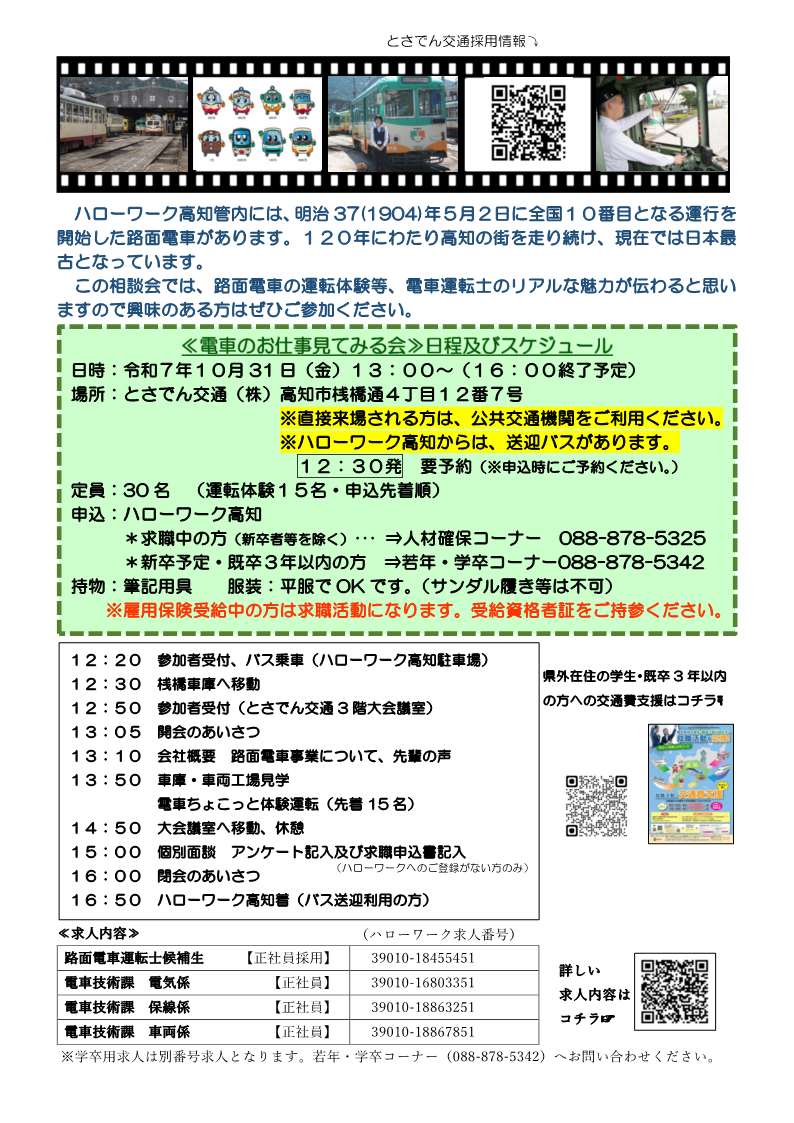 ※ハローワーク高知(無料駐車場あり)からは送迎バスがあります。