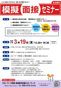 ハローワーク高知にて、「模擬面接セミナー」を開催します。
