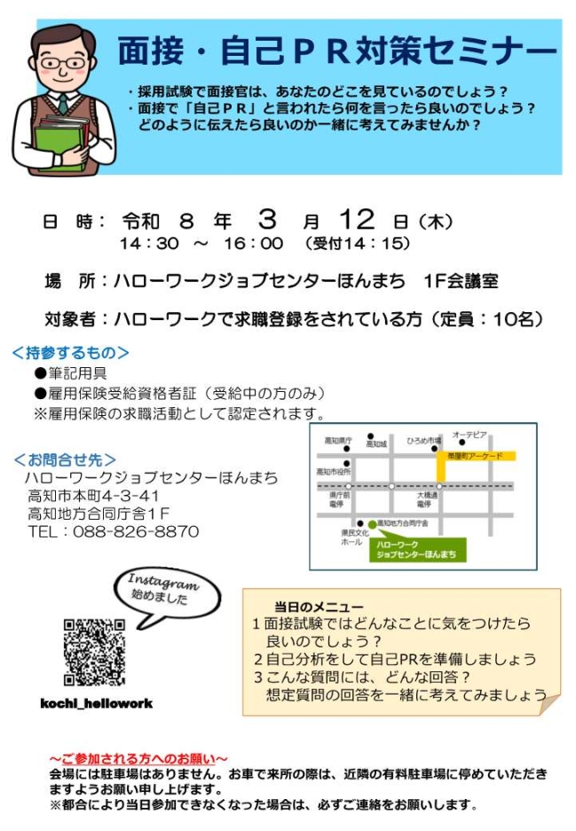 このセミナーはハローワークジョブセンターほんまちで実施します