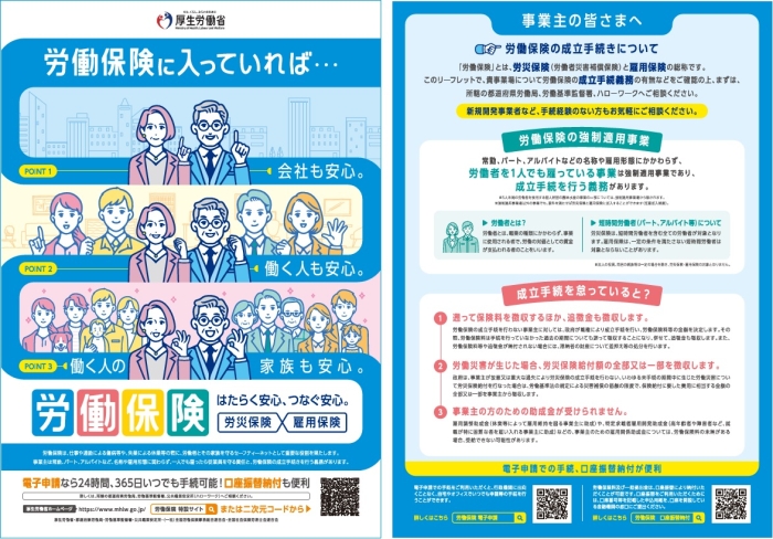 労働保険(労災保険・雇用保険)の制度の概要、成立手続(加入方法)、労働保険料の申告・納付手続(年度更新)などについて情報提供しています。