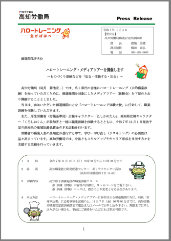 - ハロートレーニング・メディアツアーを開催します(11月10日)