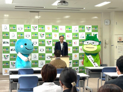 当日は厚生労働省(労働基準局)広報キャラクター「たしかめたん」、高知県広報キャラクター「くろしおくん」が参加者と一緒に職業訓練を体験するとともに、令和7年12月1日発効予定の高知県の地域最低賃金のPR活動を行いました。