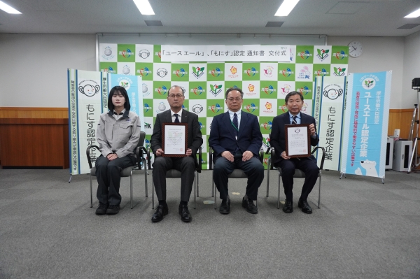 高知労働局(局長 菊池宏二)は、令和8年3月25日、株式会社田邊建設(高岡郡四万十町)に対して、青少年の雇用の促進等に関する法律に基づき若者の採用・育成に積極的で雇用管理の状況が優良な企業(ユースエール認定)として認定しました。また、フソー化成株式会社(高岡郡日高村)に対して、障害者の雇用の促進等に関する法律に基づき障害者雇用優良中小事業主基準適合事業主(愛称「もにす」)として認定しました。ユースエールについては県内20例目、もにすについては県内4例目の認定となります。