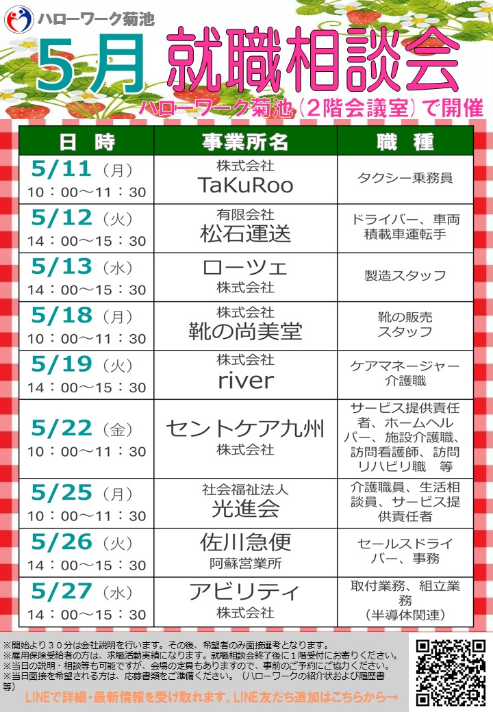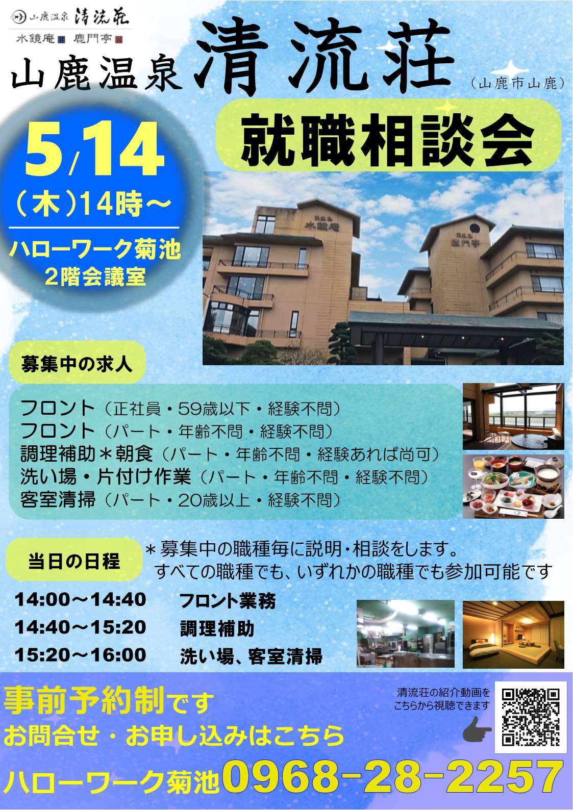 5月14日(木)山鹿温泉清流荘 就職相談会