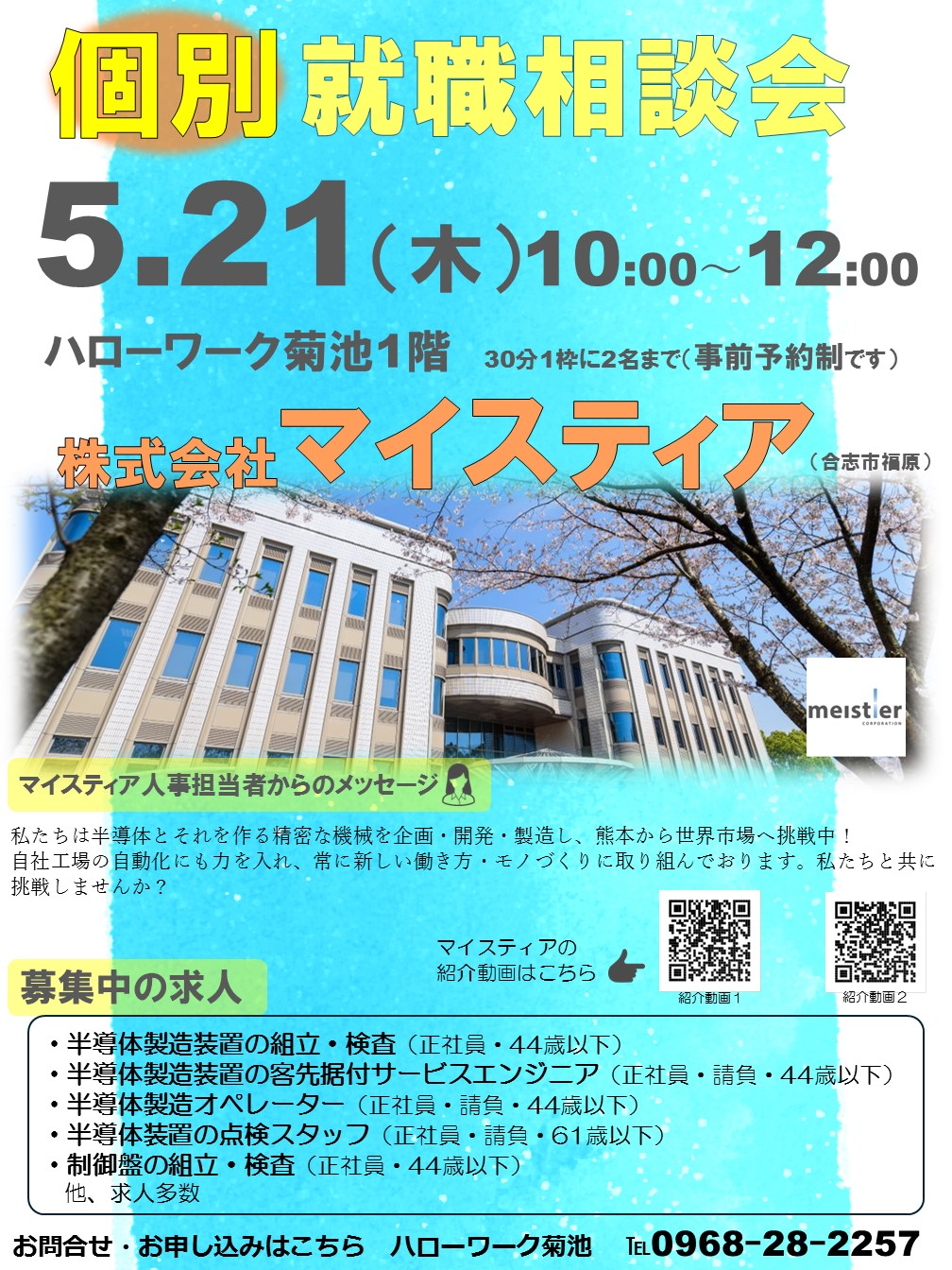 5月21日(木)株式会社マイスティア 個別就職相談会