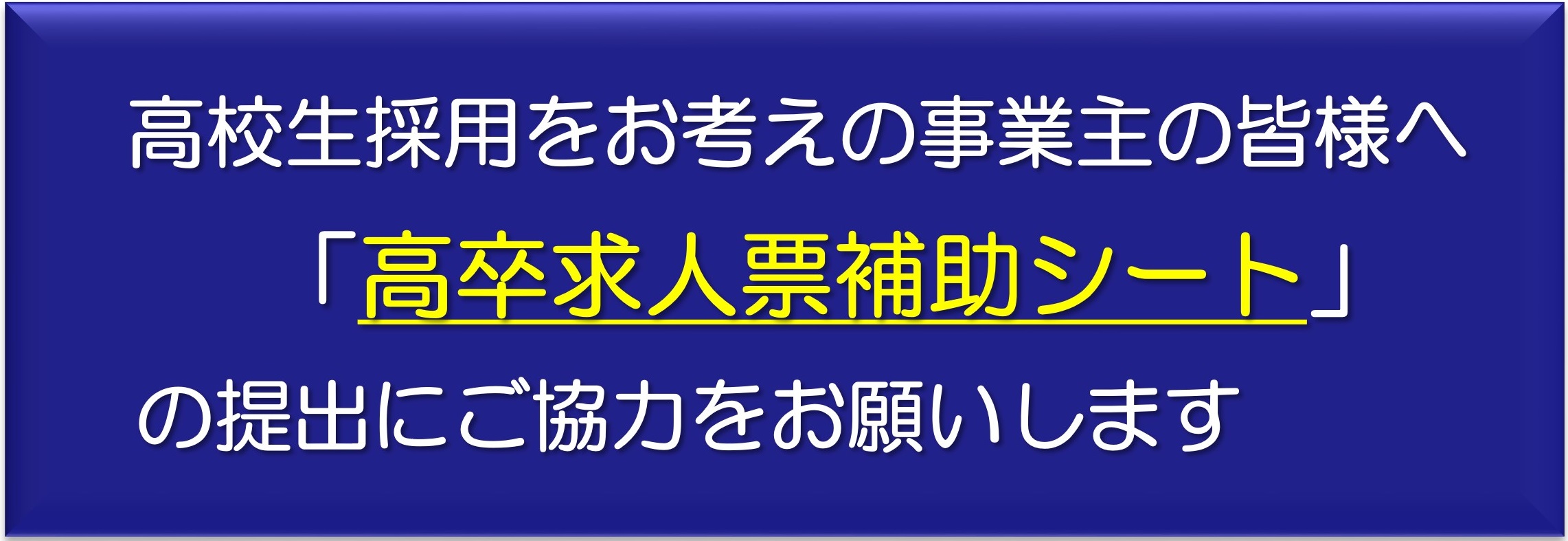 事業主の皆様におかれては、これまでも高校生にとって分かりやすい求人情報の提供に努めていただいているところですが、これから社会に出ていく高校生のため、この補助シートの提出についてご理解とご協力をお願いいたします。