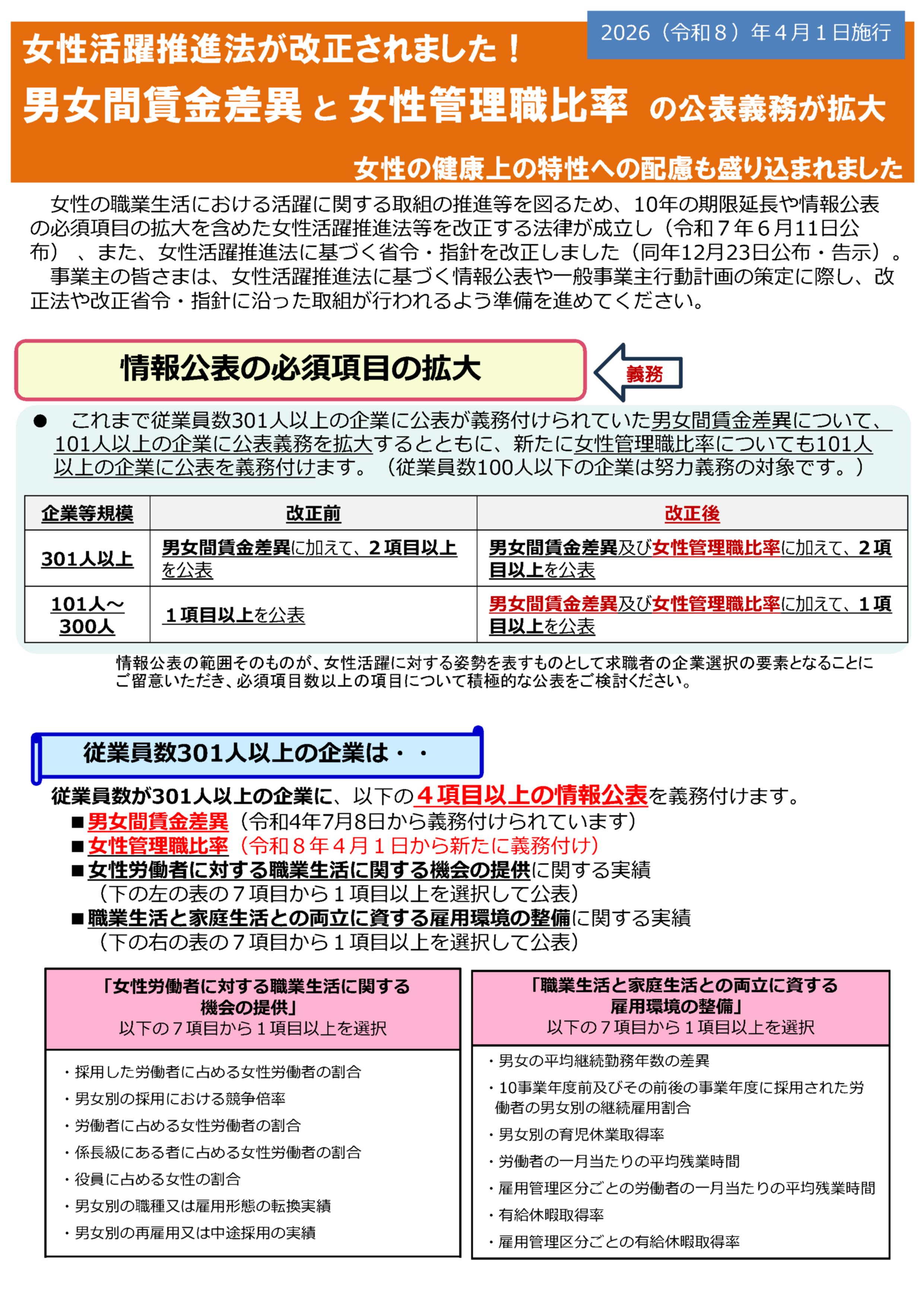 「女性の職業生活における活躍の推進に関する法律に基づく一般事業主行動計画等に関する省令の一部を改正する省令」及び「事業主行動計画策定指針の一部を改正する件」が公布されました!new