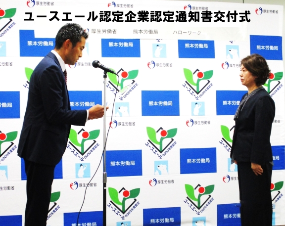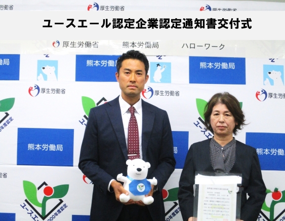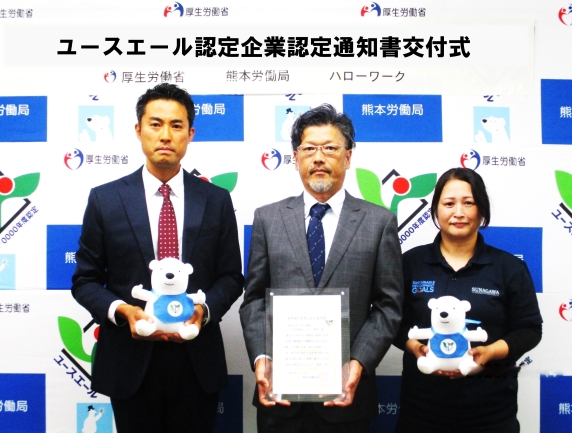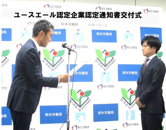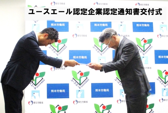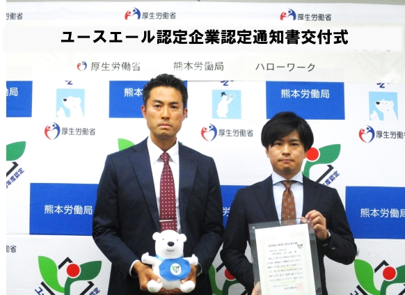 厚生労働省では、「青少年の雇用の促進等に関する法律」(若者雇用促進法)に基づき、若者の採用・育成に積極的で、離職率・有給休暇取得実績などが一定の水準を満たしており、若者の雇用管理状況が優良な中小企業を認定する「ユースエール認定制度」を実施しています。令和7年9月に「株式会社 砂川建設」(宇城市)、「株式会社 吉村建設」(宇城市)、10月に「株式会社 南州土木」(熊本市)のユースエール認定が決定しました。