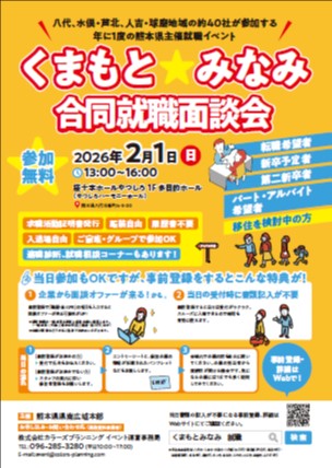 くまもと☆みなみ 合同就職面談会(熊本県県南広域本部主催)開催のお知らせ(令和8年2月1日開催)