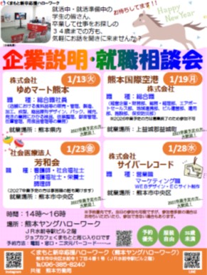 【くまもと新卒応援ハローワーク】企業説明・就職相談会(令和8年1月13日、19日、23日、28日開催)