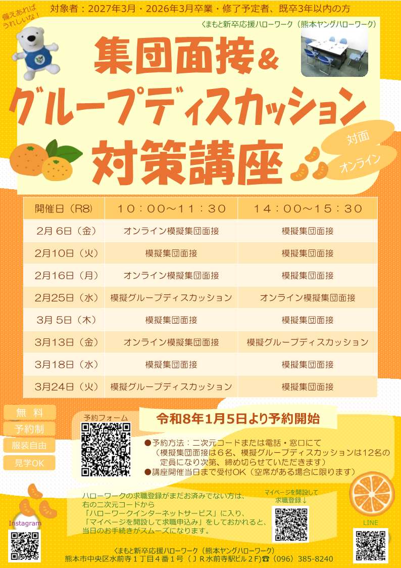 【くまもと新卒応援HW】集団面接&グループディスカッション対策講座(令和8年2月、3月開催)