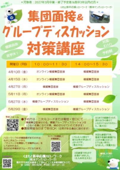 【くまもと新卒応援ハローワーク】集団面接&グループディスカッション対策講座(令和8年4月、5月開催)