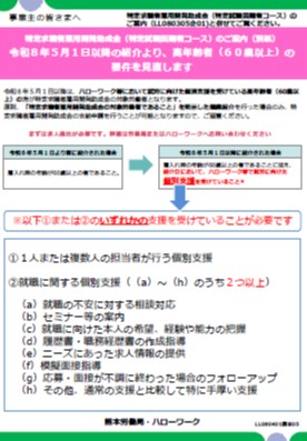 - 特定求職者雇用開発助成金(特定就職困難者コース)高年齢者(60歳以上)の要件見直しのお知らせ