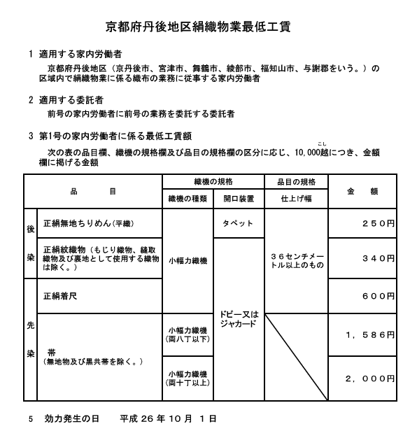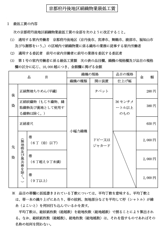 京都府丹後地区絹織物業最低工賃が改正されます。