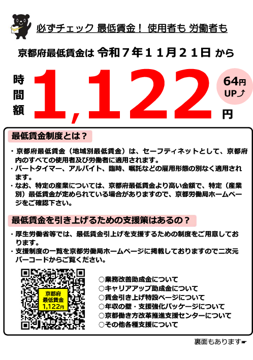 3. 令和7年度 京都府最低賃金リーフレット (A4両面カラー版 芸能人版:近藤春菜さん)