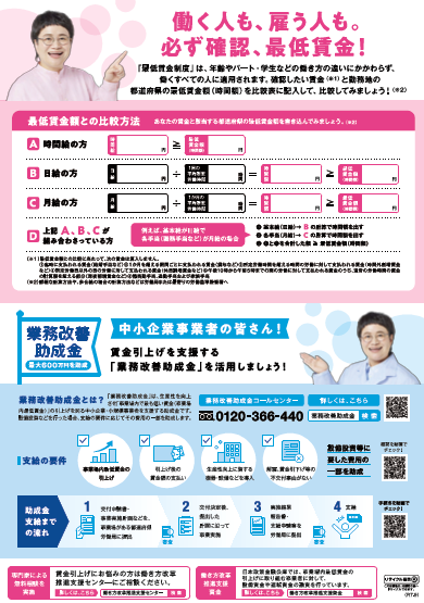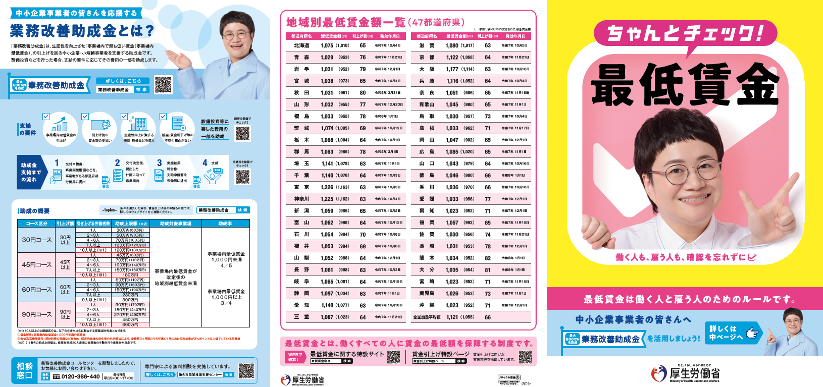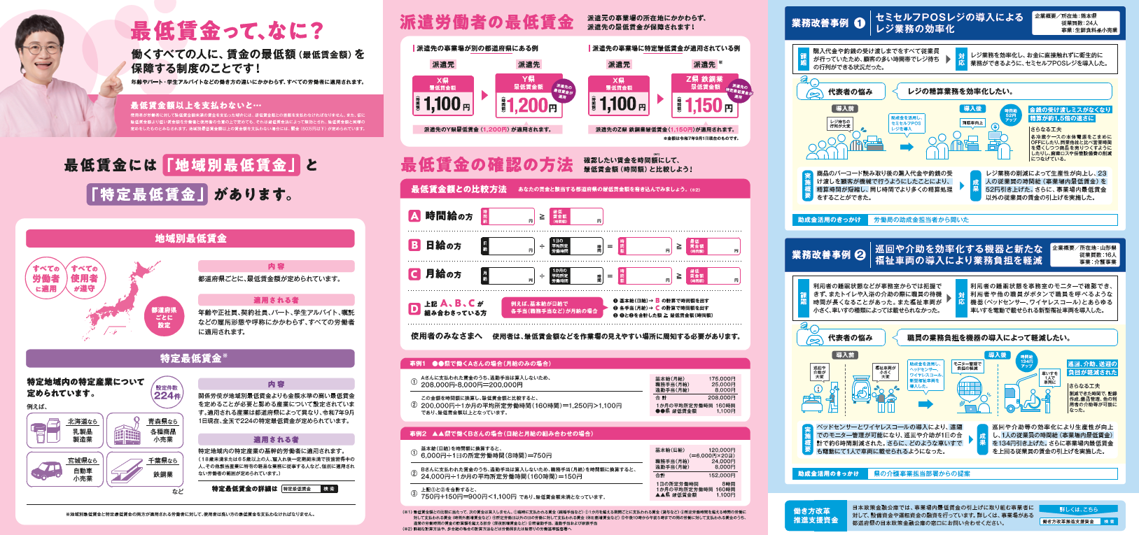 4. 令和7年度最低賃金パンフレット(A4見開き両面カラー版:近藤春菜さん)