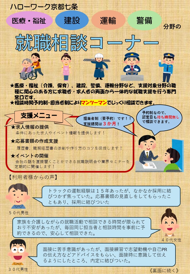 ハローワーク京都七条サービスメニュー