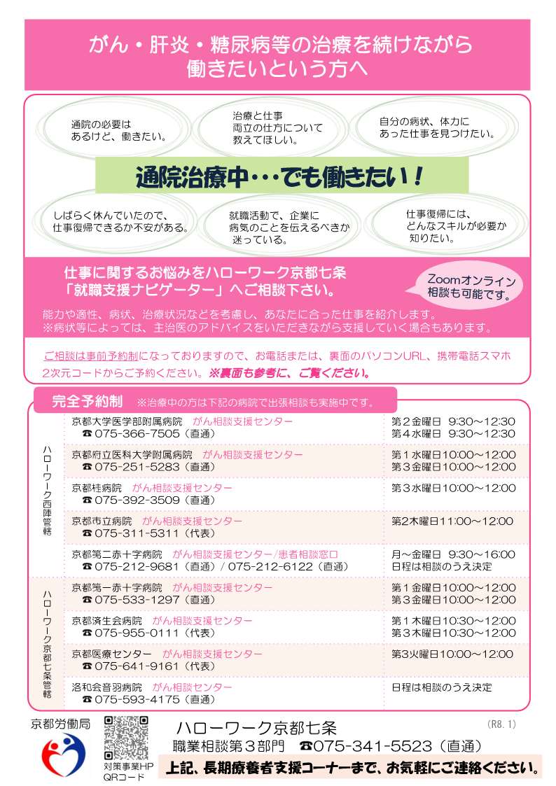 | ・がん・肝炎・糖尿病等の治療を続けながら就職を希望される方 | ![]() |