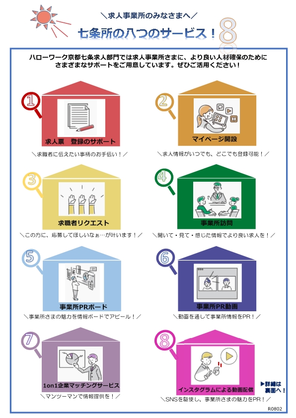 ハローワーク京都七条求人部門では求人事業所さまに、より良い人材確保のためにさまざまなサポートをご用意しています。ぜひご活用ください!