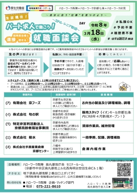 | 株式会社 国立京都国際会館食堂 | PRシートはコチラ | 求人票はコチラ |