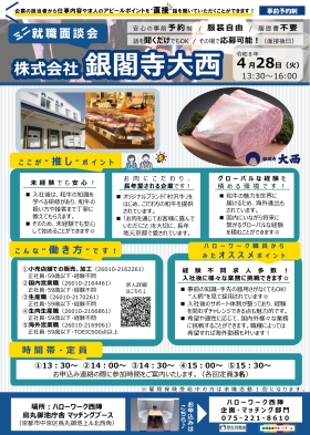 | 株式会社 銀閣寺大西 | PRシートはコチラ | 求人票はコチラ |